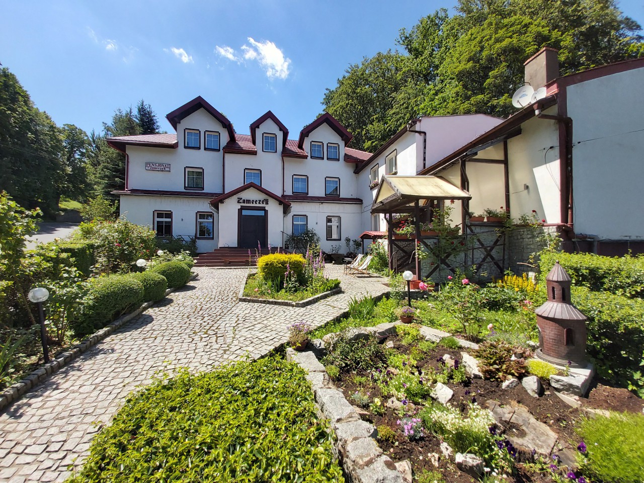 Pensjonat Zameczek jest usytuowany Szklarskiej Porębie Dolnej  (dojście do Górnej Szklarskiej Poręby 40 minut spacerem) tuż przy "Grubej Lipie". Dysponuje 50 miejscami noclegowymi w pokojach 2, 3, 4-osobowych oraz jednym pokoju studio. Wszystkie pokoje posiadają łazienki i tv, w pokojach są łóżka jednoosobowe. Posiada dużą salę wielofunkcyjną z bilardem oraz piłkarzykami.  Na terenie - przy pensjonacie znajduje się miejsce na organizowanie ogniska oraz grilla. Goście mogą korzystać z bezpłatnego dostępu do internetu Wi-Fi